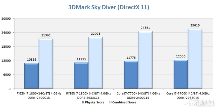 3DMark Sky Diver:Ryzen全面落后。