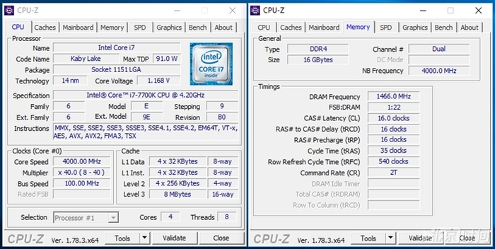 外媒就做了这样的一番特殊测试,同时将Ryzen 7 1800X、Core i7-7700K调整为四核心八线程、4.0GHz。这对于Ryzen 7 1800X来说意味着关掉了一半的核心数和线程数,同时超频,Core i7-7700K则是降频。