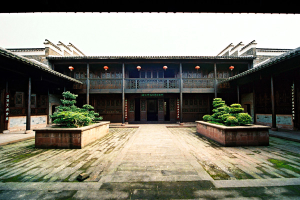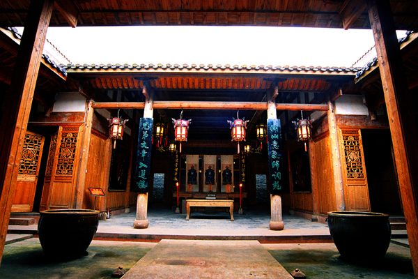 这是汪山土库的祖堂。有四块二米见方的大匾额,分别写着“忠、孝、廉、洁”四个大字。祖堂是教育族人、凝聚人心的地方,所谓“下是聚吾属,上是礼吾先,庭训隶义方,弟兄奉团结”。祖堂内还悬挂有一副对联:“湖山意气归词苑,兄弟文章入选楼。”该联为林则徐所题写,不仅生动赞赏了程氏三兄弟的文笔和才华,而且把汪山土库的所处环境和风貌写得栩栩如生,跃然纸上。