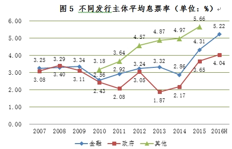 图5 不同发行主体平均息票率(单位:%)