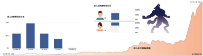 彼时,“狼人杀”开始受到越来越多网民的关注。从百度指数可以看到,“狼人杀”的指数从2016年4月开始上涨,并且在9月时达到了一次小高潮,并从2017年开始出现爆发式增长。玩家中既有中学生,也有30多岁已经工作的人们。