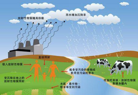 那么食物是如何受到污染的呢?发生核事故后,放射性物质会随风飘移,随着雨水沉积在植物、土壤和水中,动植物在核事故发生后的初期,可能只是表层污染,接着经呼吸、摄取或进食受核辐射污染的养分,体内便会蓄积大量的核辐射,人类由于食用这些受辐射污染的动植物,便会受到辐射的影响。