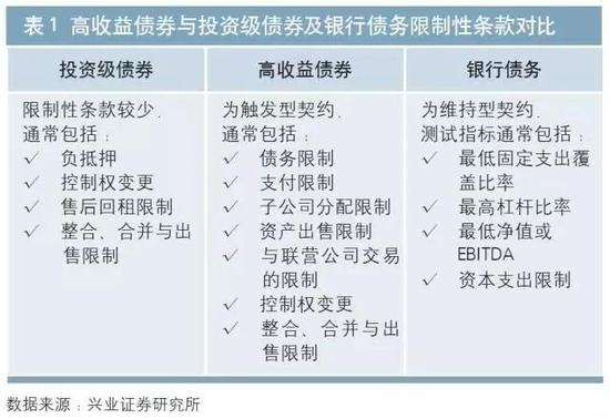 1.高收益债约束性契约与投资级债券限制性条款有所不同