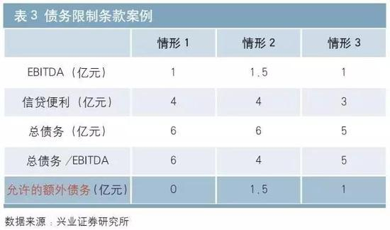 情形3:由于发行人杠杆比率已经不满足测试指标,故只能通过“允许债务”途径借贷,又由于公司借贷便利余额为3,尚有1亿元借贷余额可用。