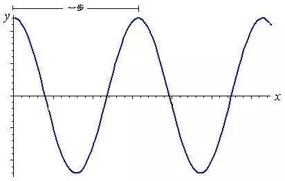 一般来说,抬腿迈出一步的时候,加速度是最大的。我们把它放到一个坐标轴上,加速度的变化看起来就像一个cos波形。