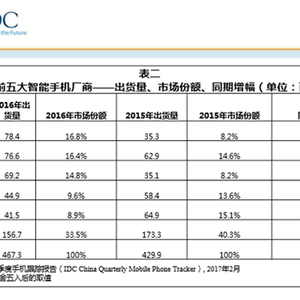 国际数据公司(IDC)最新发布的手机季度跟踪报告显示,OPPO、vivo分别位列2016年中国智能手机市场第一和第三,占市场份额合计超30% ,而位于第四位的苹果,则出现负增长,市场份额从2015年的13.6%下滑至9.6%。