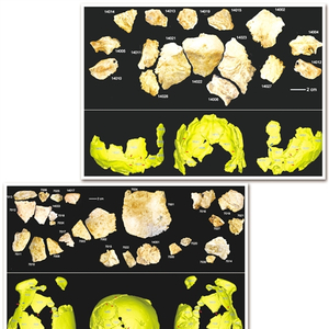 “许昌人”1号由26块游离的头骨碎片组成,复原后的头骨保留有脑颅的大部分及部分底部,代表一个年轻的男性个体;“许昌人”2号头骨由16块游离的碎片拼接而成,复原后的头骨保存有脑颅的后部,为一较年轻的成年个体。