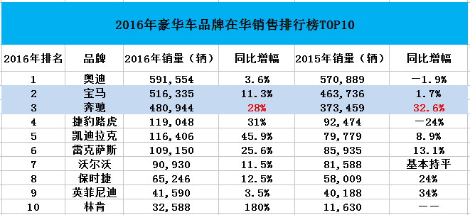 2016年,奔驰在华销售实现28%增长,是唯一一家连续三年28%以上增长的豪华品牌,此外,宝马、捷豹路虎、保时捷、沃尔沃等豪华品牌在华销售增长均在10%以上。若豪华车在华继续畅销,中升2017年的表现或值得期待。