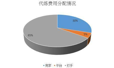 商家从号主手中接单,价值100元;发布至代练平台时,抽走单价中30%左右投入竞价、经营成本还有利润,此时发单价70元;代练平台从中收取5%作为服务费,3.5元;剩下的66.5元就归代练打手所有。