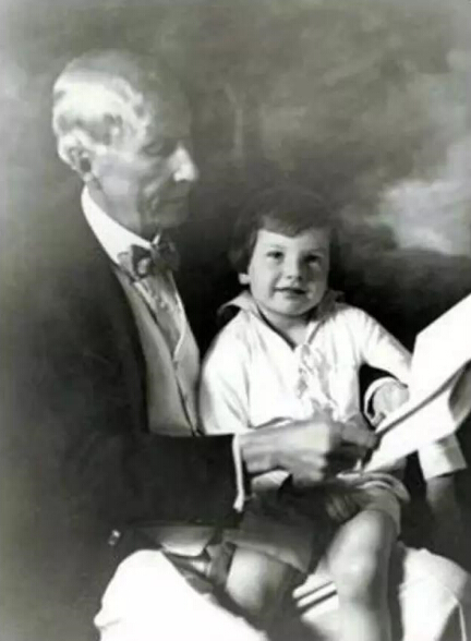 ►幼年在祖父约翰·D·洛克菲勒怀中呀呀学语