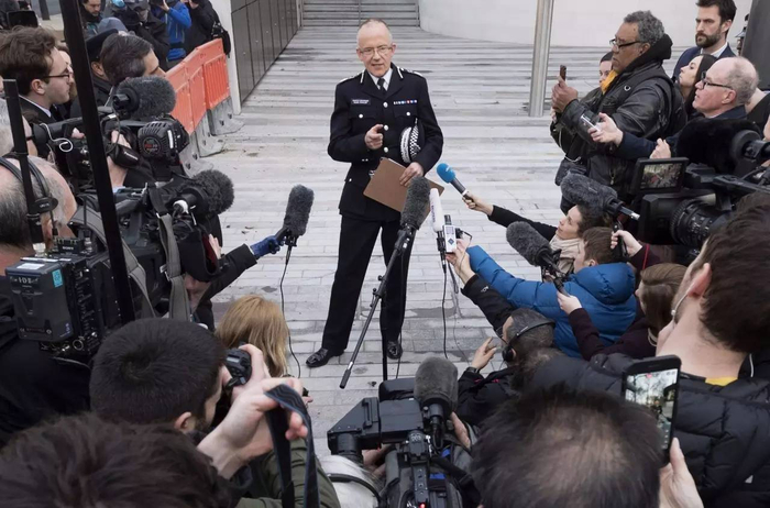 △伦敦警察局副局长、反恐部门负责人在市中心召开新闻发布会。