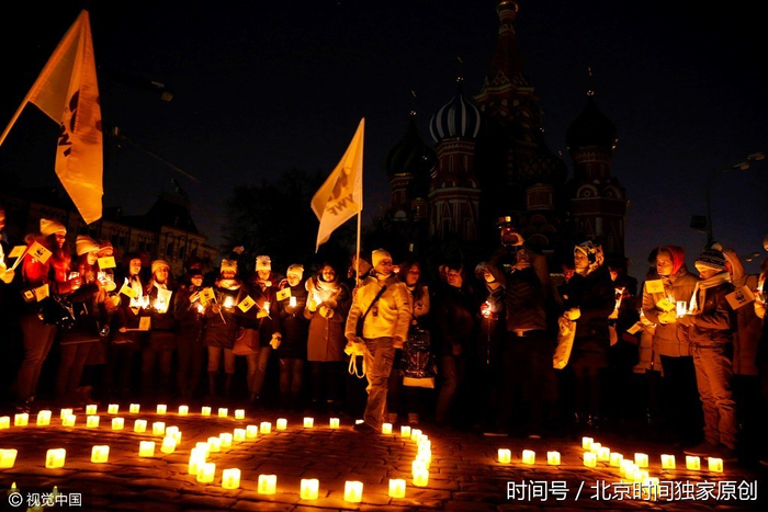 当地时间2017年3月25日,俄罗斯莫斯科,克里姆林宫和红场等建筑参与了"地球一小时"环保活动,熄灯一小时,呼吁保护环境。(图片来源:视觉中国)