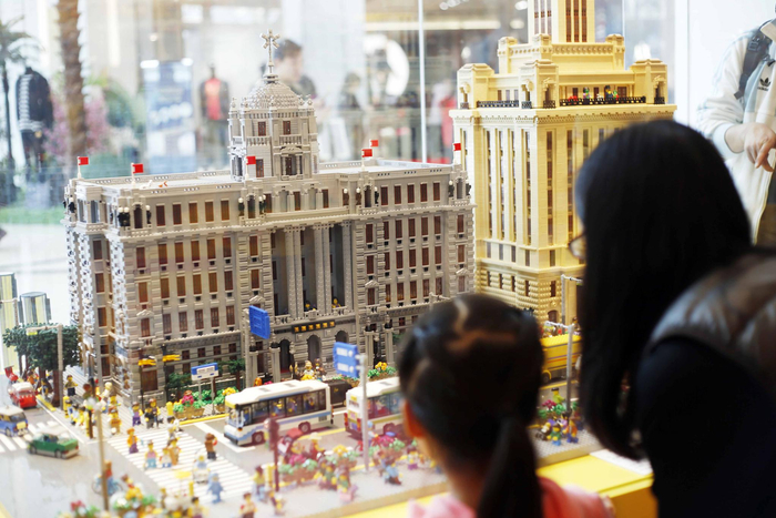 4、由十万粒乐高积木搭建成的外滩建筑模型吸引顾客驻足。在数字化时代,要获得孩子们的注意力不是简单的事,作为实体玩具制造商的乐高打起了“泛娱乐”的主意,在游戏、社交产品、主题乐园、电影、跨界动漫IP(知识产权)合作上都做了一些大胆尝试,例如开发了电子游戏、手游、桌游、视频应用等产品,有些大获成功,也有些因未达预期而宣布停运。