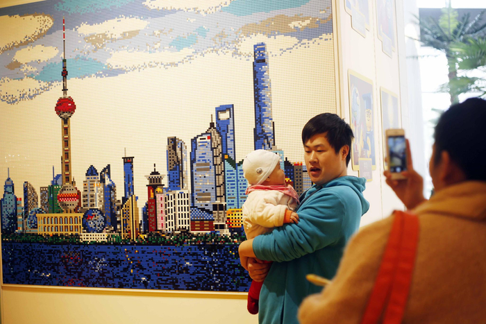 3、消费者在陆家嘴天际线马赛克画前拍照,这幅画用了4万粒乐高积木交织而成,呈现上海多元化的国际大都会形象。从2016年乐高集团的年报不难看出,中国市场的重要战略地位:2016年11月,位于中国嘉兴的乐高工厂正式揭牌;乐高基金会投入数百万丹麦克朗,与清华大学在去年成立终身学习实验室;在上海迪士尼小镇,开设亚洲首家乐高品牌旗舰店。