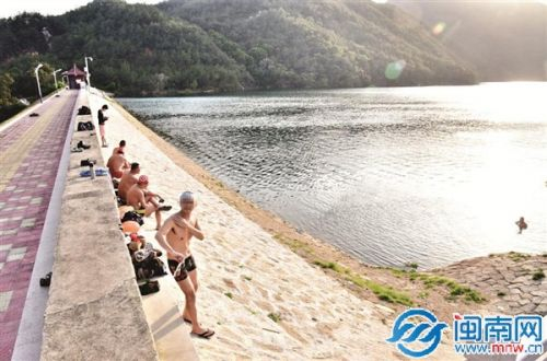 昨天到梅山水库游泳的人不少