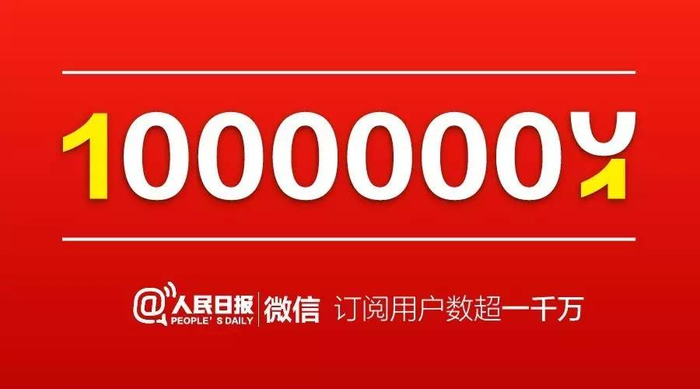 1000万,是一个值得庆祝的节点,也是我们开启新征程的起点。此刻,我们送出万元现金红包,感谢每一个你长久以来对人民日报微信的支持、关爱、拍砖、吐槽。