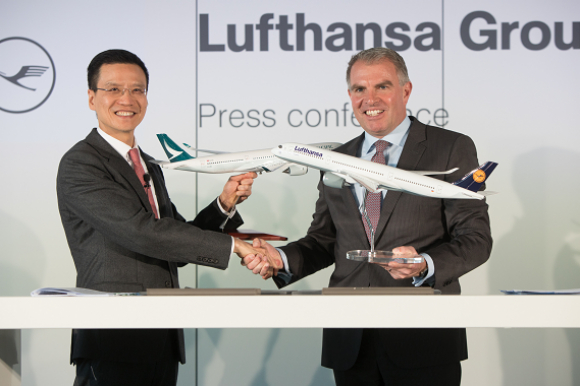 汉莎与国泰于3月28日签署了一项代码共享协议,双方将从4月26日开始在一系列重要航线上开展代码共享合作。汉莎集团旗下子公司奥地利航空和瑞士国际航空也被纳入此项合作之中。