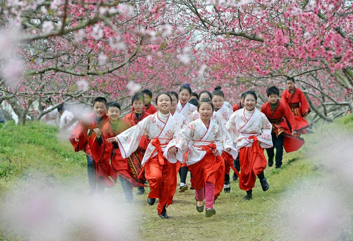 每年三月底四月初,西藏林芝地区,波密桃花沟处处繁花似锦,犹如置身春日画卷中。据当地人说,桃花沟里很多野生桃树已经生长了四五百年。