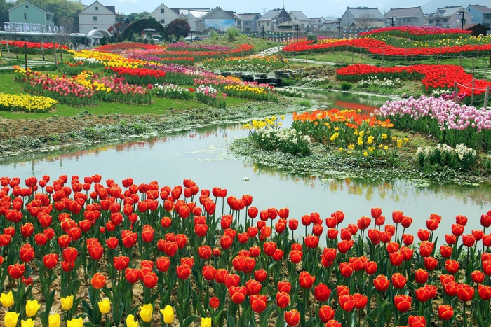 3月28日,浙江省杭州市桐庐县江南镇荻浦村,300余亩郁金香花田已经进入盛花期,徜徉花海间,美哉!