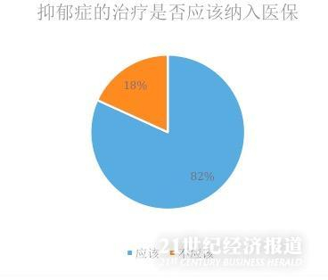 大约有82%人认为抑郁症的治疗应当和其他身体疾病一样应该纳入医保当中。