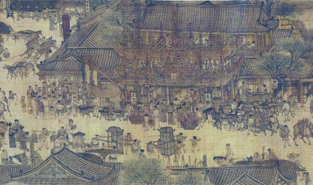 《清明上河图》局部,描绘了宋代集市热闹空前的场面。
