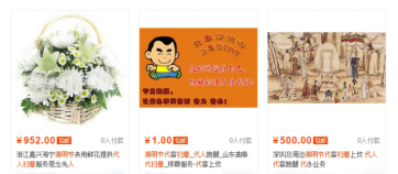 (来自某购物网站关于“代扫墓”的截图)