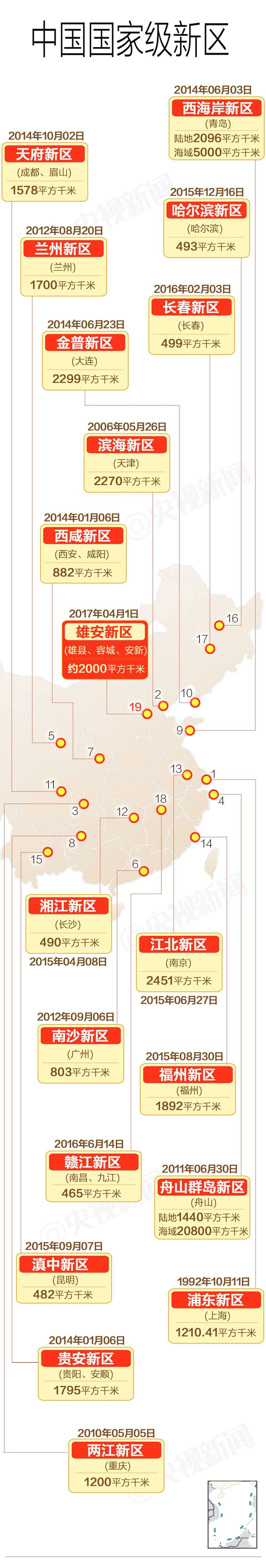 目前,如果算上河北雄安新区,国家级新区总数为19个。