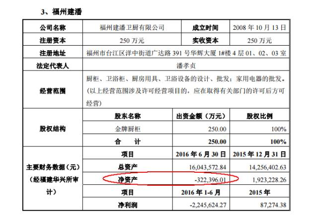 值得关注的是,金牌厨柜目前共拥有11家控股子公司,其中8家子公司在报告期末均出现了不同程度的亏损,北京北信恒隆厨卫有限公司、福州建潘厨卫有限公司、泉州市泉信厨卫有限公司、陕西建潘卫厨有限公司、上海建潘卫厨有限公司、深圳建潘卫厨有限公司、无锡建盈厨卫有限公司,7家子公司的净资产也均为负数。