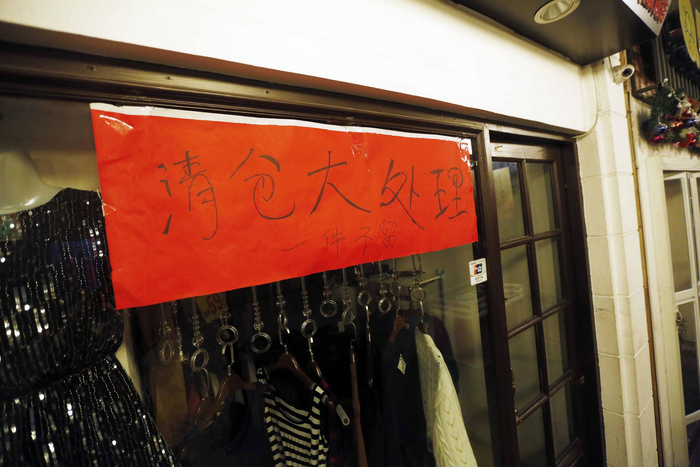 5、类似“清仓大处理”的标语随处可见,饮品、餐饮类店铺以及此前较多的美容美发、饰品类商铺几乎都搬离了。1930风情街的顾客多以外地游客或地铁乘客为主,与人民广场的其他商业体相比,这里的人气并不算旺。