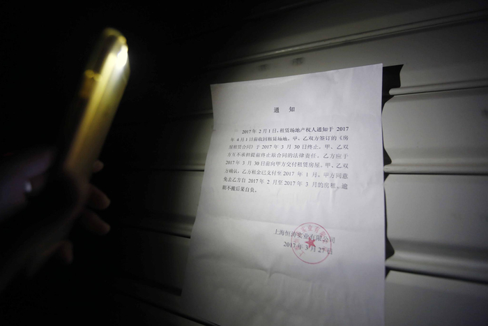 4、一家已经撤离的店铺卷帘门上张贴着一纸通知:“租赁场地产权人通知于4月1日前收回租赁场地,甲乙双方签订的《房屋租赁合同》于3月30日终止。”记者了解到,由于上海城市规划展示馆有整体改造的打算,而1930风情街也被纳入改造范围内,因此现有商铺租约到期后,暂不考虑续租。