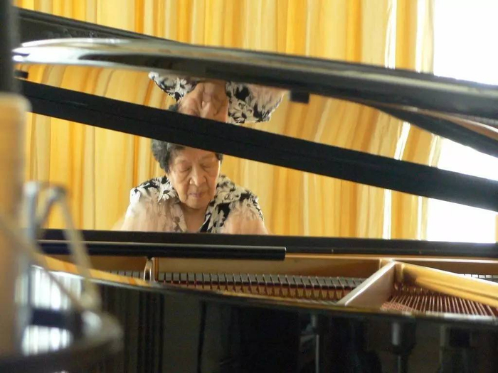 视频中的巫漪丽,87岁,步调已经颤颤巍巍,泰然自若,淡然如水。抬手的一瞬,奏响第一个音符,指尖有力,强弱转换,岁月在她脸上留下了苍老,却没改变她手上的那份情。