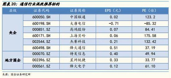 1)央企:重点关注已出混改方案的中国联通,还有各细分领域的成长股:大唐电信(集成电路核心产业上市平台,引入优质资源补短板)、高鸿股份(电科院持股比例不断稀释,利于改革推进),上海贝岭(整合集成电路资产路径明确,集团唯一集成电路上市平台),杰赛科技(整合优质资源注入,受益于军工改革驱动,通信混改唯一上市平台),烽火通信(光通信业务整合平台,优质资产注入预期强烈)、光迅科技(看好深化股权激励);