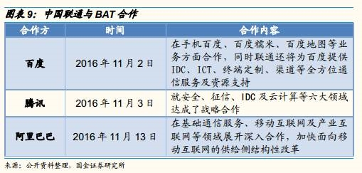 1) 从混改模式上看,我们倾向于以引入战投为主要的改革模式。由于联通体量大,中小企业一般无法吃下合作项目,因此必定会选择实力强大的企业,引入其他成分的战略投资,我们推测主要是互联网、云计算、大数据等领域的企业。基于联通在互联网拓展方面的积极性、互联网数据市场的广阔性以及参考16年11月与BAT签署的一系列战略合作协议,我们认为联通应该会与BAT中的一家或者两家开展纵深合作,当然也不排除一些实力强的多元化民营企业;
