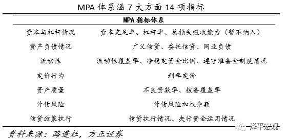 MPA简单的可理解为,央行在季末考核期借助在MPA评价体系对广义信贷类资产进行考察,通过设定一定的阈值范围评价并规范银行行为。