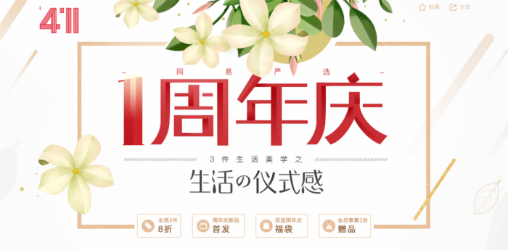 去年618,网易严选一反电商低价优先的策略,打出“三件生活美学”的概念,三件及以下打八折,超过三件不打折。这种求质不求低价的新消费观念随即获得市场的响应,618期间,网易严选流水翻了20倍。而“三件生活美学”概念也几乎成了网易严选的大促代名词,在随后的双11和今年4月周年庆中继续被沿用。