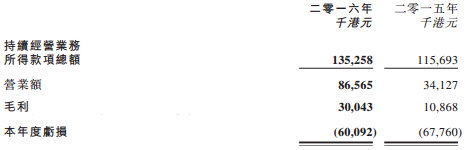 进入2017年,锐康药业仍在操作“老一套”。2017年3月21日,锐康药业发布2016年业绩。期内,该公司实现营业额8656.5万,同比增长1.54倍;净亏损5015.1万元,上年同期亏损6226.9万元;基本每股亏损0.071元。