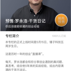罗永浩专栏“干货日记” 得到App预售3天破200万