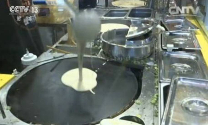 记者:跟我说说,煎饼是怎么做的,都用什么原料。