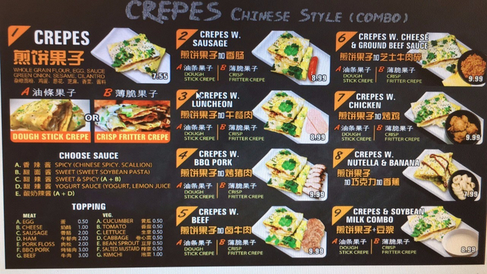 △本台记者随机拍摄到一处餐厅中的煎饼果子菜单