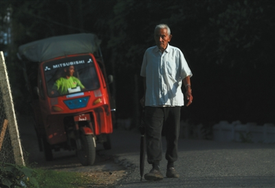 4月5日,李光钿出门散步。除了特别不好的天气,他每天都要散步两次,每趟有四五公里。A12-A13版摄影/新京报记者 浦峰