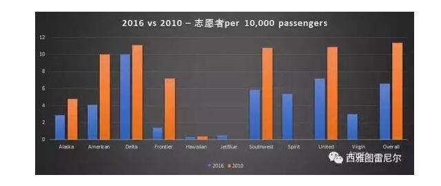 2016年愿意当志愿者的从11%降到了6%左右,志愿者比例变化最小的是Delta。 Delta其实是玩超售比较多的,但是对人还算比较真诚的。