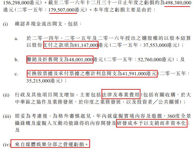 而亏损扩大主要是由于,一些非现金流出开支,行政及其他项目开支增加,研发成本费用化和媒体娱乐分部的营运亏损。