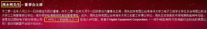 早在2015年,HTC创始人之一,也是前CEO的周永明就加入公司,获委任为执行董事和董事会主席。
