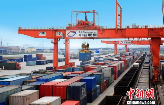 重庆沙坪坝西永片区西部物流园区域实施国际铁路联运大通道建设,构造辐射亚欧的“铁水空公”多式联运体系。 资料图 摄