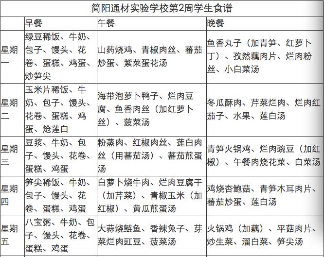 通材学校今年第二周的菜单