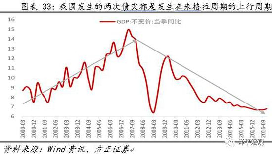 2011年的债券收益率之所以没有那么明显的上升,偏弱的经济预期是重要原因。我国发生的两次债灾(2003年-2004年、2007年)都是发生在朱格拉周期的上行周期,而一旦到2007年以后(朱格拉周期进入下行阶段),由于经济预期的走弱,债券市场的债灾式调整就没有再发生过。