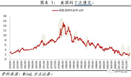 我们首先观察比我国债券市场规模大的两个市场(也是全球最大的两个债市):美国及日本债券市场。根据以上判断债灾的标准,美国在近年出现过7次债灾(1969年8月-1970年1月、1979年6月-1981年9月、1984年1月-1984年6月、1987年3月-1987年10月、1994年1月-1994年11月、2013年4月-2013年12月、2016年7月至今);日本债市在历史上也发生过三次著名的债灾(1979年8月-1980年3月、1989年8月-1990年9月、2003年6月-2004年6月)。