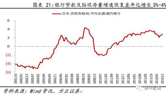 在90年代日本经济下台阶之后,日本的银行业已经积累了大量的不良资产,惜贷问题严重。于是,日本政府开始用大量注资的办法去为金融机构注资,支持金融机构的并购重组,在结合首轮QE刺激之后,银行的惜贷问题得以显著解决,银行贷款及贴现存量增速从年化5%左右的降幅恢复至年化增长3%-4%。