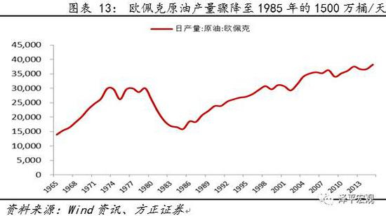 美国的第二次债灾发生于第二次石油危机之时。第二次石油危机始于1978年的伊朗革命,而后在1980年又因两伊战争被激化,伊朗的石油供应突然减少,在极大程度上推动了原油价格的上升。自1979年起,随着欧佩克原油产量从3000万桶/天骤降至1985年的1500万桶/天,原油价格每桶价格从1979年的13美元暴增至1980年的41美元。