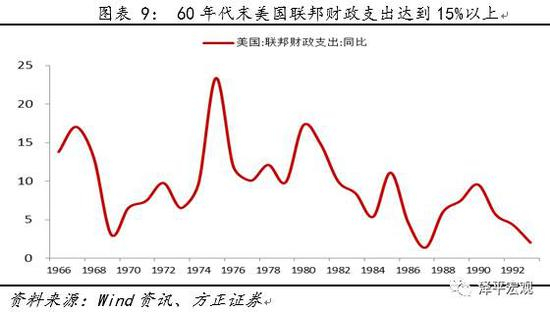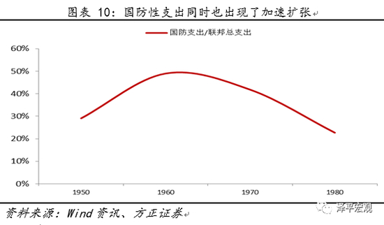 一来美国当时的联邦财政支出已达到15%以上的高增长状态,且因同时爆发的越南战争,国防性支出同时也出现了加速扩张,当时的国防支出占总财政支出的比例已然达到40%以上。